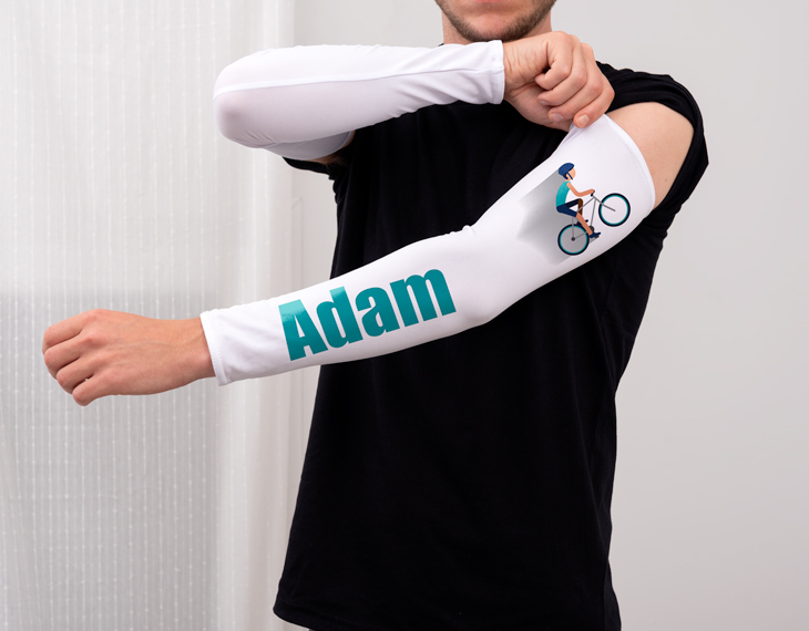 El deporte es muy importante para el bienestar de nuestra salud, nos aporta un montón de beneficios y nos previene de enfermedades. Si tú también conoces a esa persona súper deportista, sin duda, este es el mejor regalo para ciclistas que le puedes hacer. Se trata de nuestras mangas deportivas personalizadas. Estas mangas son elásticas y miden 44cm de largo, es importante estirarlas al máximo para favorecer el riego sanguíneo. Son de talla única. Entre sus ventajas y funciones está: aportan flexibilidad, mejoran la técnica, mantienen la temperatura óptima de los músculos, por lo que previenen las lesiones. Lo mejor que tienen estas mangas, es que son personalizables. Podrás escribir el nombre o el mensaje que tú quieras y nosotros lo ponemos en el tejido de las mangas. Para personalizarlo, lo primero es añadir el producto al carrito y entrar al área de personalización. Material: combinación de nailon+spandex. Dimensiones (sin estirar): 44cm de largo; 8,5cm de ancho en la parte más cerrada; 11,5cm de ancho en la parte más abierta. Talla única.