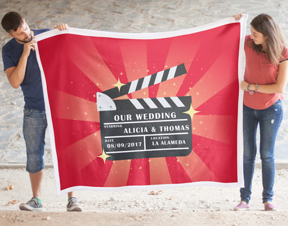 Para una sesión de manta y peli, esta manta personalizada será el aliado perfecto. Personalízala como la típica claqueta de cine (escogiendo título de vuestra peli, actores, fecha y ubicación) y sorprende a tu pareja con un regalo de cine. Al adquirir el producto (y antes de pagar) se te preguntará el texto para la manta. Las medidas pueden variar unos centímetros, son aproximadas.