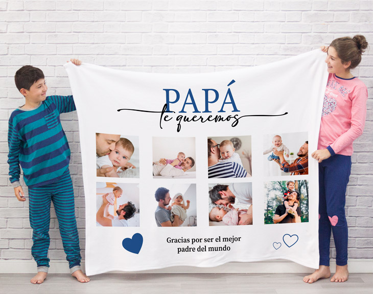 Los momentos que vivimos toda la familia juntos son los que verdaderamente determinan nuestra personalidad. Algunos de los instantes más importantes de nuestra vida lo pasamos junto a una persona fundamental: nuestro padre. ¡Es la persona que nos enseña y nos protege del mundo en todo momento! Esta manta personalizada será la más indicada para emocionar al mejor papá del mundo. Si quieres mantener a papá bien alejado del frío durante todo el invierno, estamos seguros de que esta manta con diseño para papá es el regalo que estabas buscando. Podrás escoger entre nuestros tres tipos de mantas extra-suaves: polar, coralina y sherpa borreguillo. Y no tendrás que preocuparte por el tamaño... ¡Todas tienen una medida de 170 x 135 centímetros! ¿Cómo podrás personalizar este regalo original para padres? No habrá mejor manera de sorprender a papá que con un collage con sus mejores momentos en familia. Añade el producto al carrito para poder acceder al diseñador. ¡Solo tendrás que subir las imágenes que quieras y clicar sobre el cuadro de texto para personalizar esta manta con una bonita dedicatoria! Las medidas pueden varias unos centímetros, son aproximadas.