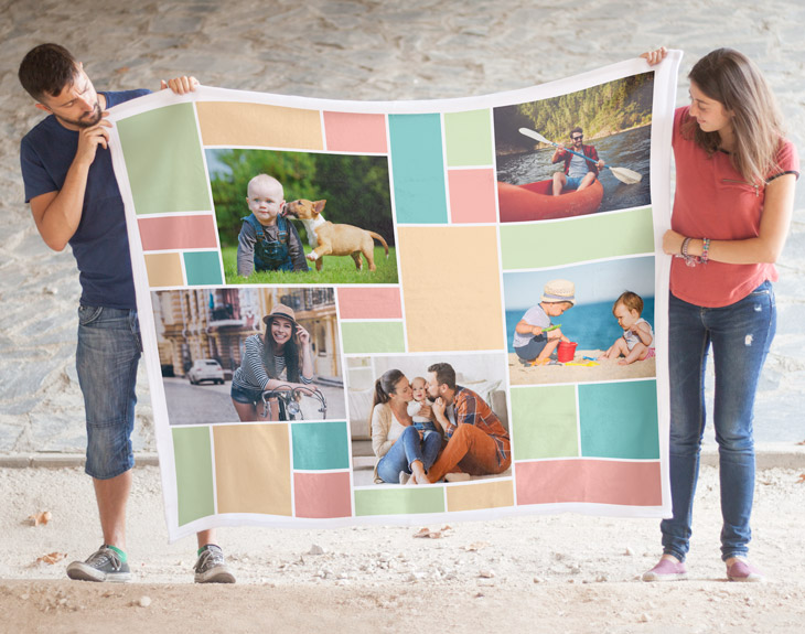 Todos tenemos momentos inolvidables. Ya sabes, recuerdos que nunca puedes sacar de tu mente, con los que te sale una enorme sonrisa en cualquier momento. ¿Cuáles son los tuyos? Tal vez la primera cita con el amor de tu vida, el mejor viaje que has realizado con la familia o esa cena con amigos que siempre sale a colación en vuestras quedadas. Esos recuerdos son imborrables, y es necesario recordarlos a lo largo de nuestra vida. Y es que no se nos ocurre una mejor manera de volver a esos instantes que con nuestra manta collage personalizada. Nuestro día a día puede llegar a ser agotador, y todos necesitamos un poco de relax y comodidad cuando llegamos a casa. Gracias a esta manta, tus noches serán mucho más nostálgicas y calentitas... ¡y más coloridas! Hazle un regalo original muy especial a esa persona que tanto quieres con esta manta. Incluye vuestras fotos más emotivas en estos marcos rectangulares de colores, con los que decorarás cualquier rincón de casa. Además, también podrás elegir los colores que aparecerán en el regalo. ¡Escoge el tono que más represente a esa personita! Este producto ofrece tres opciones distintas de mantas, dependiendo del gusto de la persona a la que se le vaya a regalar. Si lo que más le apasiona es una manta aterciopelada, de esas que dan mucho gusto cuando te la pones encima, la manta polar es la mejor opción. Por otro lado, si prefieres una que sea muy calentita y suave, y te abrigue en las largas noches invernales, la manta coralina es perfecta para esa persona especial. Y por último nuestra manta sherpa que tiene un poco de ambas: el borreguillo más calentito y la suavidad de la manta coralina. Las medidas pueden varias unos centímetros, son aproximadas: 170x130 cm.