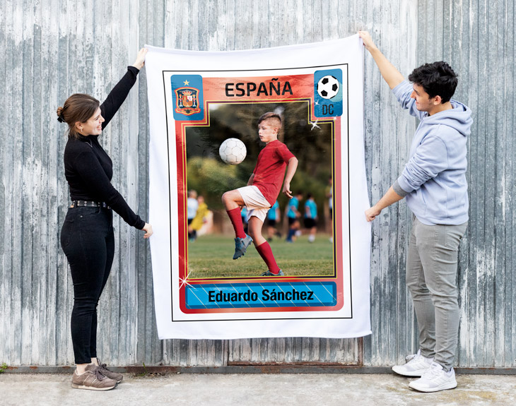Ser fanático del fútbol es una sensación maravillosa. Sentir esa emoción que no se puede describir cuando juega tu equipo, animarlo y cantar su himno... ¡no tiene precio! Y compartir esa pasión con tu familia y amigos es aún mejor. Pero, no siempre vemos los partidos desde el estadio rodeados de miles de personas, muchas veces nos apetece verlos desde casa. Para eso, queremos estar bien cómodos desde el sofá y sin pasar nada de frío, por eso Este original regalo es la solución. Y para estar bien calentito en casa disfrutando del partido, nuestra manta personalizada es el mejor complemento. Con sus dimensiones de 170x130 es perfecta para compartirla con esa persona tan fanática del fútbol como tú. Además, lo mejor es que puedes personalizar totalmente a medida tu manta. Queremos que tanto tú como la persona que vaya a recibir este regalo se sienta como un auténtico jugador de fútbol reflejado en un cromo. Podrás elegir entre los diferentes diseños que te ofrecemos y añadir la imagen y texto que quieras. ¡Todos querrán una manta igual que esta! Este producto ofrece tres opciones distintas de mantas, dependiendo del gusto de la persona a la que se le vaya a regalar. Si lo que más le apasiona es una manta aterciopelada, de esas que dan mucho gusto cuando te la pones encima, la manta polar es la mejor opción. Por otro lado, si prefieres una que sea muy calentita y suave, y te abrigue en las largas noches invernales, la manta coralina es perfecta para esa persona especial. Y por último nuestra manta sherpa que tiene un poco de ambas: el borreguillo más calentito y la suavidad de la manta coralina. Las medidas pueden variar unos centímetros, son aproximadas.