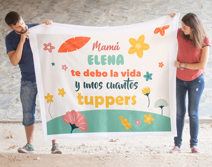 • Manta personalizada 170cm x 130cm. • Tarjeta recordatoria. Las madres son capaces de hacer de todo por nosotros. Nos dieron la vida, pero también todo lo que siempre fuimos necesitando. Nos cuidaron, nos ayudaron a crecer, nos aconsejaron y, cuando somos mayores, siguen estando ahí para todo. Si tu madre siempre ha sido tu mayor apoyo, es hora de devolverle el favor y de demostrarle lo mucho que valoras su esfuerzo. Con nuestra manta personalizada darás en el clavo, porque la sorprenderás con un detalle que podrá conservar para siempre, único y, por si fuera poco, de lo más práctico. A la hora de hacer el pedido dispondrás de 3 modelos de mantas entre los que escoger. Nuestra manta polar es la elección perfecta cuando el presupuesto es más ajustado o cuando buscamos una manta resistente y que ocupe poco espacio. La manta de coralina tiene un tacto extrasuave, con tela tipo peluche y de lo más gustosa. La manta sherpa borreguito es la elección ideal cuando buscamos lo mejor de lo mejor, externamente, es de coralina y tacto supersuave, mientras que en su interior nos encontramos con una calentita y achuchable tela de borreguito. Las tres tienen un tamaño de 170x130 centímetros, lo que las hace perfectas para cubrir a una persona adulta sin problema. De cara a la personalización, solo tienes que añadir el nombre de tu madre en el apartado A+ del diseñador. El nombre se colocará justo debajo de la palabra “mamá” y encima de nuestro divertido texto “te debo la vida y unos cuantos tuppers”. Seguro que a tu madre le encanta su mensaje y presumirá de hijos con todos sus invitados.