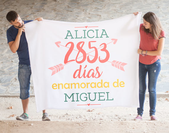 Personaliza una manta polar con algo tan especial como los días que lleváis enamorados el uno del otro. ¿No te parece un regalo perfecto para San Valentín o para vuestro aniversario? Al adquirir el producto (y antes de pagar) podrás personalizar tu manta. Las medidas pueden variar unos centímetros, son aproximadas.
