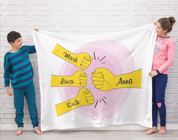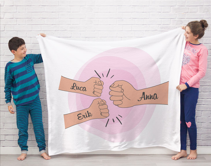 • Manta personalizada de 170 cm x 130 cm • Tarjeta recordatoria.
