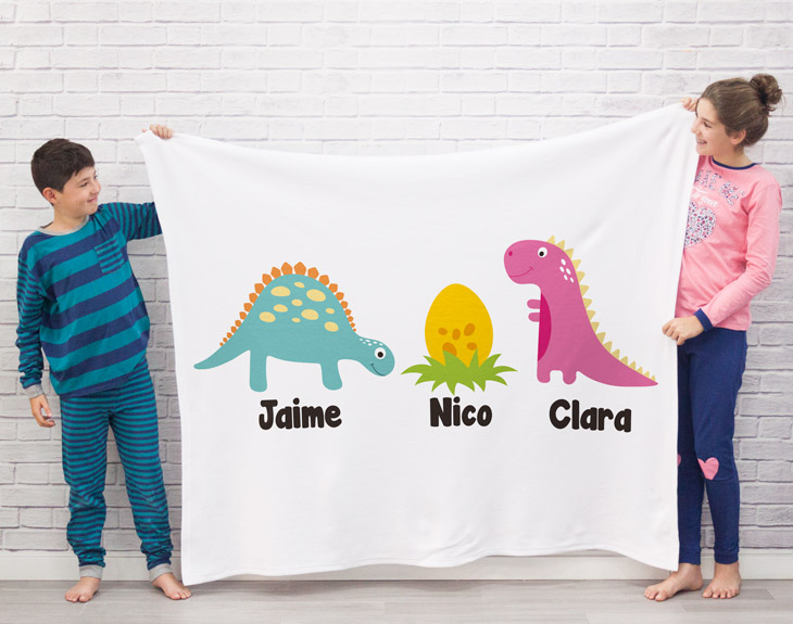 ¿En casa sois muy fans de los dinosaurios y de todo lo relacionado con esta curiosa etapa de la historia? Seguro que tenéis un tipo de dinosaurio favorito: el Velociraptor, el Triceratops, el Tyrannosaurus rex, el Mononykus... todas esta clase de criaturas son históricas, y las hemos visto representadas en una multitud de obras a lo largo de nuestra vida. Estamos seguros de que no podéis olvidaros de estos dinosaurios en ningún momento del día, ni siquiera cuando os tumbáis en el sofá. ¿No os gustaría relajaros junto con estas extraordinarias criaturas? Descansad de la manera más cómoda gracias a esta manta personalizada tan divertida y colorida. Con este regalo original no solo podrás crear tu propia familia dinosaurio... ¡también podréis escoger el que más os guste! Cada miembro de la casa tendrá su propio dinosaurio, y podréis elegir entre más de 75 personajes. ¡Pasad una tarde en familia con esta manta (pre)histórica. Importante: nuestro equipo de personalización se encargará de ajustar la distribución de los personajes en el producto en función de su tamaño para que se vean lo mejor posible. Las medidas pueden variar unos centímetros, son aproximadas.