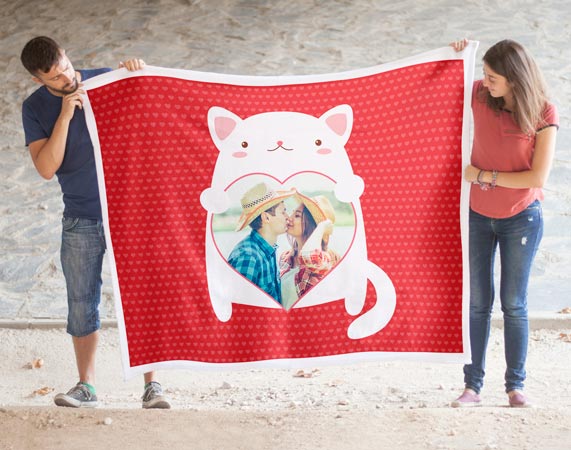 La manta personalizada perfecta para esos domingos de pareja tirados en el sofá. Si a tu novio o novia le encantan los planes de peli, mantita y mimos, este regalo le gustará muchísimo. Además de ser una manta muy pero que muy calentita y suave, tiene este diseño tan especial. Una foto vuestra enmarcada por un gatito lleno de corazones...¿no te parece lo más tierno del mundo? Imagínate un maratón de vuestras pelis favoritas, una bolsa enorme de chuches, palomitas y los dos abrazados en el sofá con esta manta. ¡No existe un plan mejor para los días de frío! Importante: si puedes tener reacción a cualquier tipo de alérgenos, puedes escribirnos para consultar si hay alguna opción alternativa. Las medidas pueden variar unos centímetros, son aproximadas.