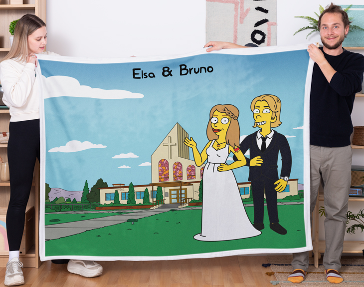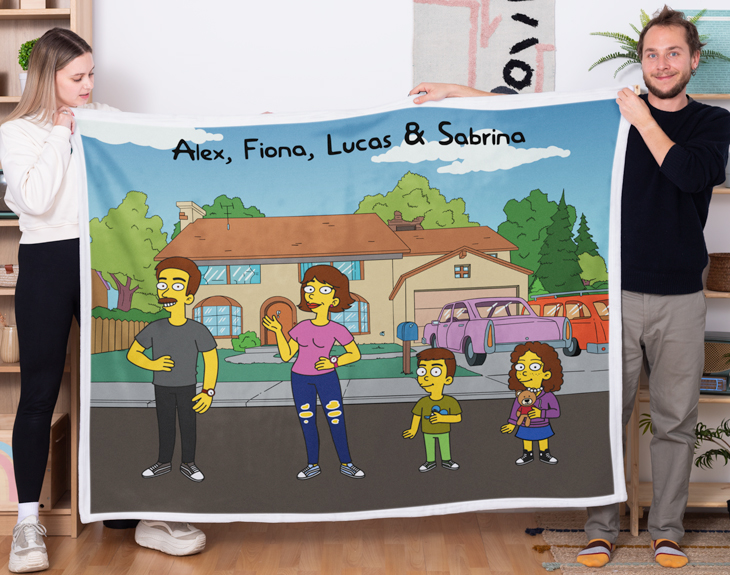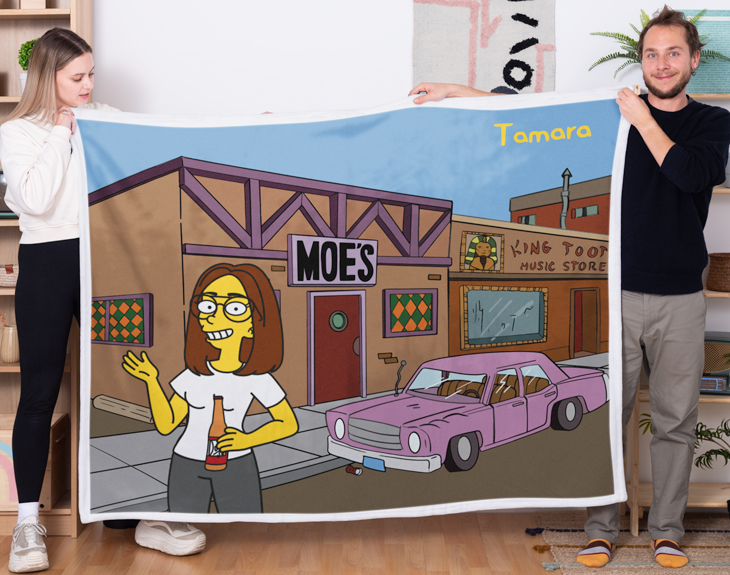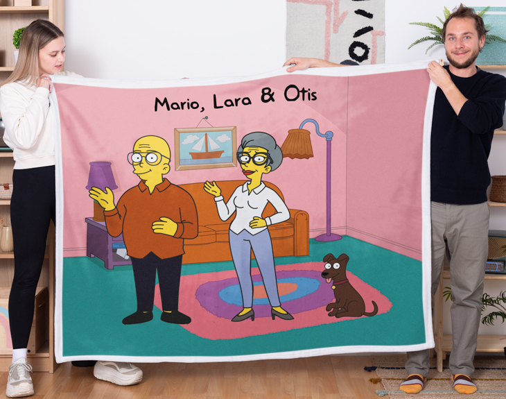 Haz que los inviernos sean más divertidos con esta manta personalizada. ¿Tu pareja y tú siempre pensáis en cambiar de manta cuando llega el invierno y al final nunca lo hacéis? Este es el momento para sorprenderla cuando menos se lo espere. Imagínate estar viendo los Simpson con vuestra manta personalizada con vuestras ilustraciones. ¡Es una auténtica pasada! La manta mide 170 cm x 130 cm, un tamaño ideal para tumbaros los dos y disfrutar de las mejores películas con palomitas. ¿Cómo funciona? Solo tienes que entrar en el área de personalización y seguir los pasos que te indicamos. Primero, elige el fondo que más te guste: el icónico salón de Los Simpson, el mítico Bar de Moe o la iglesia de Springfield. Después, deja volar tu imaginación creando tus personajes desde cero y con todos los detalles que necesitas. Para finalizar, añade un texto en la parte superior y listo. ¡Será el regalo más original y calentito del mundo! Las medidas pueden variar unos centímetros, son aproximadas.