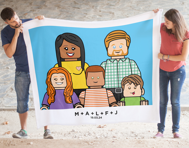 ¿Quién no ha querido tener uno de esos míticos collages Pop? Si quieres estar bien abrigado en invierno pero siempre de la forma más moderna posible, esta manta personalizada será el mejor acompañamiento para esas noches de sofá y peli. ¡Una manta de lo más suave sobre la que se plasmará un diseño de lo más artístico y nostálgico! Y es que todos hemos jugado con esos sets de construcción en los que creábamos ciudades y lugares de ensueño. ¡Esta manta con diseño de collage Lego está pensada para todas esas personas que adoraban estas clásicas figuras! Contamos con tres tipos distintos de manta entre los que elegir, todos ellos con la misma medida de 170 x 135 centímetros: polar, coralina o sherpa borreguillo. ¡Escoge la que más te guste! Si estás pensando en hacerle un regalo original a esa persona bohemia a la que le flipan los colores y solo sabe colecciones Legos... ¡No encontrarás un detalle más apropiado! Escoge la manta que quieras entre las opciones disponibles y añade el producto al carrito. En el interior del área de personalización solo tendrás que elegir los personajes que quieres para el diseño crearlos en el diseñador de personajes. ¡Escoge hasta 6 personajes! En el interior del diseñador encontrarás también los diferentes tipos de collages Pop con los que contamos, dependiendo del número de personajes escogido. Tendrás que clicar sobre el diseño que se ajuste al número de personajes. Por ejemplo, si escoges un total de 5 personajes para tu producto, tendrás que escoger el diseño titulado "5 personajes". Una vez escogido, podrás escribir el texto que quieras para tu diseño collage. ¡Podrás escribir desde los nombres de todos los miembros de la familia hasta una bonita dedicatoria! Medidas: 170 x 130 centímetros. Las medidas pueden varias unos centímetros, son aproximadas. Material: polar, coralina o sherpa borreguillo.