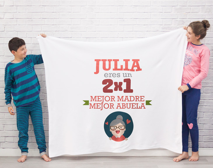 ¿Se te ocurre un plan mejor que estar con tu abuela en casa escuchando mil historias de cuando era joven? Si no hay nada que valores más que pasar tiempo con tu abuela, esta manta personalizada es una manera fantástica de demostrárselo. Solamente tienes que decirnos su nombre y le podrás decir de la forma más original que es la mejor madre y abuela del mundo...¿Te imaginas la ilusión que le hará? Y es que, si tu abuela es el pilar fundamental de la familia y siempre está pendiente de vosotros se merece un detalle así de increíble. De esta manera, cada vez que se siente con vosotros en el sofá a ver la tele podrá disfrutar de la manta más especial de todas...¿No te parece una gran idea? Las medidas pueden variar unos centímetros, son aproximadas.