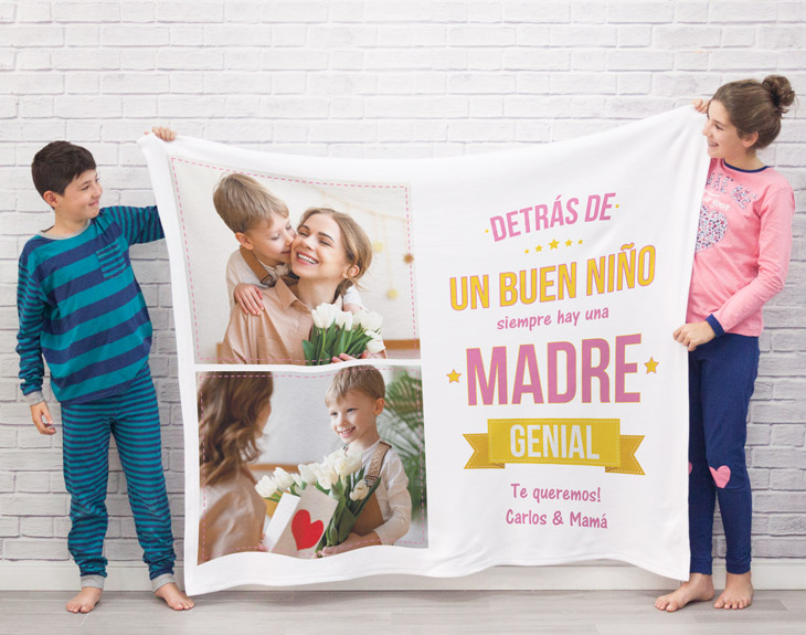 No hay persona más importante en el mundo que una madre. Porque como ellas no hay nadie, eso está claro. Las madres son únicas porque siempre están a nuestro lado, desde que nacemos en adelante, en los buenos y malos momentos y enseñándonos a ser mejores personas día a día. ¡Eso se merece un buen reconocimiento! La mejor forma de hacerlo y que lo recuerde todos los días es con esta manta personalizada. Perfecta para no pasar frío en invierno y con un diseño que el encantará ver cada vez que la use. Es la mejor manta del mundo entero. Cualquier mamá se merece que le sorprendan todos los días, pero especialmente es fechas importantes como el Día de la Madre o su cumpleaños. Por eso, esta original manta con diseño para madres es el regalo perfecto para las mamis más frioleras. Podrás elegir el tipo de manta que crear que más le va a gustar: polar, coralina o sherpa. Cualquier elección es genial. Y además, no tendrás que preocuparte por el tamaño, porque todas miden 170 x 130 centímetros. La medida perfecta para estar bien calentita siempre. Pero este regalo no sería igual sin personalizar esta manta. ¡Es muy sencillo! Elige el tipo de manta que quieras, añade el producto al carrito y comienza a diseñarla. Selecciona tus fotos favoritas y añade una breve dedicatoria en la parte inferior del diseño, colócalo todo como quieras y listo. ¡Mamá recibirá la mejor manta del mundo! Las medidas pueden varias unos centímetros, son aproximadas.