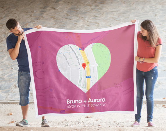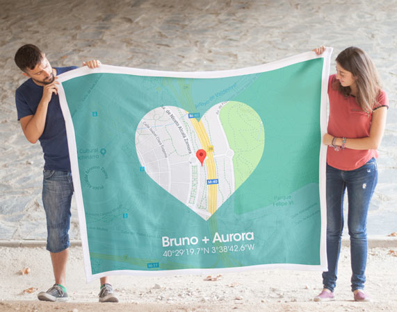 Hazte con una manta personalizada en la que ese sitio especial (donde fue vuestra primera cita, vuestra boda o donde nació vuestro bebé) sea el auténtico protagonista. Podrás poner un mapa, las coordenadas y (por supuesto) vuestros nombres. Un regalo muy calentito, ya que al fin y al cabo es una manta polar, y a la vez muy romántico. Al adquirir el producto (y antes de pagar) podrás personalizar tu manta. Las medidas pueden variar unos centímetros, son aproximadas.