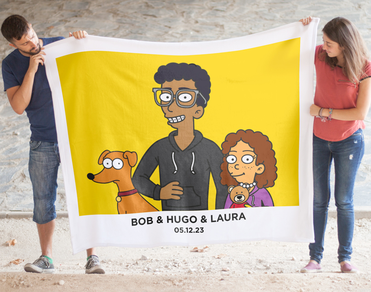 Si uno de los planes favoritos de vuestro padre es hacer un maratón de Los Simpson en familia, necesitáis esta manta personalizada en casa. Ahora sí que sí os podréis transportar a Springfield y vivir las divertidas aventuras de la familia más icónica de la televisión. Lo mejor de todo, es que podréis crear vuestros propios personajes a medida, solamente tendréis que entrar en nuestro diseñador y escoger todos los elementos necesarios para que se parezcan al máximo a vosotros. Pelo, ropa, accesorios y mucho más. No se nos ocurre un regalo más original para dejar sin palabras a vuestro padre en su cumpleaños, en navidad o en el Día del Padre, y es que, cualquier excusa es buena para dar un detalle especial a vuestro papá. Y es que, si tenéis la suerte de tener al mejor del mundo en casa, ha llegado el momento de demostrárselo con un regalo como este. ¿Os imagináis la ilusión que le hará? ¿Cómo diseñarla? ¡Muy sencillo! El primer paso es escoger el tipo de manta que más se ajuste a vuestras necesidades (polar o coralina), una ves seleccionada tendréis que elegir el número de personajes que queréis que aparezcan en la manta. A partir de aquí empieza lo divertido, podréis crear vuestros propios personajes totalmente a medida, incluso cambiar el color de fondo o añadir texto. ¡Quedará chulísima! Nosotros nos encargamos de plasmar vuestro diseño en la manta, ahora solo os queda una última cosa para hacer un regalo inolvidable...¡Preparar un planazo todos juntos para estrenarla! Un buen cubo de palomitas, vuestras chocolatinas preferidas y un maratón de Los Simpson, ¡no se nos ocurre una tarde más divertida que esta! Medidas: 170 x 130 centímetros. Material: polar o coralina. Las medidas pueden varias unos centímetros, son aproximadas.