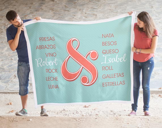 No hay nada más bonito que una pareja perfecta. ¿La tuya lo es? ¿Os comparan con la fresa y la nata o la leche y las galletas? Esta es la manta perfecta para acurrucaros en el sofá los domingos por la tarde o días de lluvia. Si no habéis encontrado todavía una manta que os llene de amor, esta lo hará sin duda. Os preguntaremos los nombres para sumarlos a la lista de las parejas perfectas del mundo. ¡Atreveos con este juego tan dulce! Las medidas pueden variar unos centímetros, son aproximadas.