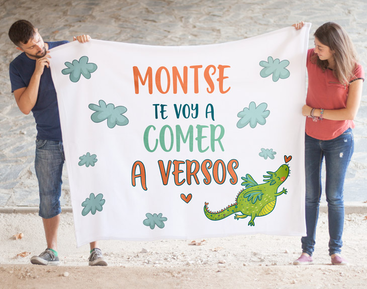 Si tienes un amigo que siempre está en las nubes o tu chica es una enamorada de las películas y libros de fantasía, hoy os traemos un regalo con el que echarán a volar su imaginación. Os hablamos de nuestra Manta personalizada Te voy a comer a versos. Un precioso detalle, genial para sorprender en fechas especiales como Sant Jordi, y diseñado con el nombre de esa persona tan importante para ti. A la hora de hacer el pedido, dispondrás de una plantilla para anotar el nombre del destinatario del regalo sobre un divertido fondo de nubes y con un tierno dragón. Además, a la hora de escoger tu regalo, tendrás la opción de elegir entre tres tipos de mantas diferentes: manta polar, manta de coralina y manta sherpa borreguito. Si buscas un regalo original para este Sant Jordi o quieres sorprender a un ser querido al que le gusta mucho la fantasía o la lectura, esta preciosa manta es una elección genial para dar con el regalo perfecto. Cada vez que se acurruque con ella se acordará de ti y de lo especial que se sintió con este precioso regalo personalizado. Las medidas pueden variar unos centímetros, son aproximadas.