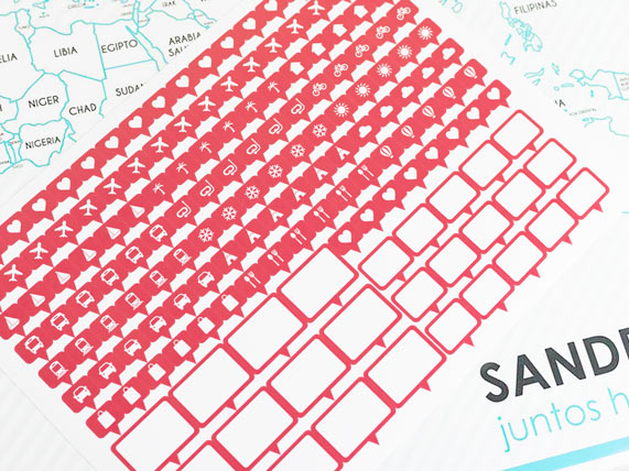 • Mapa del mundo con pegatinas personalizado. • Tarjeta Recordatoria.