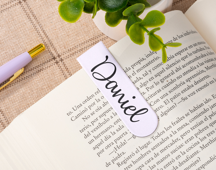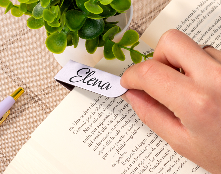 Si no sabes qué regalar a cualquier amante de los libros, este marcapáginas con imán personalizado es el detalle perfecto con el que triunfarás, por ejemplo, el día de Sant Jordi. Y es que si quieres salirte un poquito de lo convencional y no regalar el típico libro con la rosa, sin duda este marcapáginas es la mejor opción del mundo. Este original marcapáginas es el accesorio perfecto para los amantes de la lectura y para todas esas personas a las que les gusta cuidar sus libros. Y es que gracias a su pequeño tamaño y al imán que contiene en su interior, podrás acomodarlo en la página que quieras sin dañarla mientras hace su función. ¡Es lo más! Y espera porque toca personalizar este marcapáginas. Al entrar en el área de personalización, podrás elegir el color de fondo para el marcapáginas y después escribir el nombre que aparecerá en una de las dos solapas. Ya solo queda disfrutar de este accesorio mientras lees tu libro favorito. Medidas marcapáginas cerrado: 6 x 2 cm. Medidas del marcapáginas abierto: 12 x 2 cm.