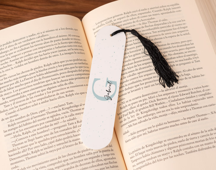 • Marcapáginas de metacrilato personalizado. • Tarjeta Recordatoria.