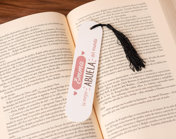 Una abuela debería ser eterna por todo lo que significa para sus nietos y todo el amor que siempre nos dan. Seguro que tu abuela ha sido como una segunda madre para ti y por eso se merece el mejor regalo del mundo: ¡este marcapáginas de metacrilato personalizado! Si tu abuela es toda una lectora y no para de leer un libro tras otro, este pequeño detalle puede ser el más especial para ella. ¡Podrá usarlo en todos sus libros! Si quieres decirle a tu abuela que es la mejor del mundo mundial, hazlo con este original marcapáginas especialmente hecho para ella. Es el regalo perfecto para sorprenderla en cualquier ocasión especial y agradecerle todo lo que ha hecho por ti. Hecho de metacrilato, tiene el tamaño perfecto para que pueda usarlo en todos sus libros y llevarlo donde quiera. Además, incluye una pequeña borla para que quede fuera del libro y tener ubicado en qué página hay que continuar leyendo. Personalizar este marcapáginas es muy fácil. Añade el producto al carrito y podrás crear tu propio diseño. En la plantilla que te dejamos con el diseño, solo tendrás que añadir el nombre de tu abuela y ajustarlo como quieras para que quede perfecto. ¡Es el mejor regalo del mundo! Medidas: - 12 cm alto - 3,5 cm ancho - 3 mm grosor Importante: en el extremo incluye una pequeña borla de hilo. Podrás elegir el color que más te guste: gris, negro, azul, rosa o marrón clarito.