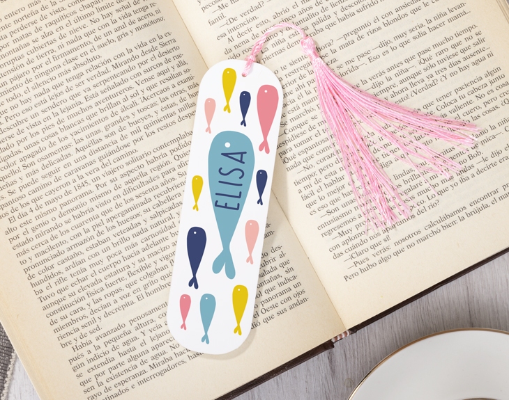 ¿Alguna vez te has parado a leer sobre el inmenso mundo marino que se oculta bajo nuestros pies? Esa enorme cantidad de preciosas criaturas, grandes y pequeñas, han inspirado épicas historias como Moby Dick. ¡O hasta tu libro de Biología! Sea para uno o para otro, el mejor complemento de lectura que puedes tener es este marcapáginas personalizado con llavero. Para que cada vez que los abras, recuerdes la belleza marina que puedes descubrir si sigues leyendo con atención. Estos pececitos tienen algo de especial. Aparte de estar rellenos de los más bonitos colores, ¡tendrán tu nombre impreso con ellos! Personaliza con el breve texto que quieras este marcapáginas de metacrilato con nombre y mira lo bonito que va a quedar en la previsualización. Además, podrás completar este precioso diseño con un llavero metálico sorpresa de material escolar. ¡Todo es poco para animarte a leer y descubrir más del mundo en el que vives! Ya sea que busques un regalo original para lectores, para la vuelta al cole, o para aficionados a los peces y la biología, podrás diseñar este separador de páginas personalizado exclusivamente para ellos. ¡Y mira en la previsualización lo bonito que quedará antes de comprarlo! Medidas: - 12 cm alto - 3,5 cm ancho - 3 mm grosor Importante: en el extremo incluye una pequeña borla de hilo. Podrás elegir el color que más te guste: gris, negro, azul, rosa o marrón clarito.