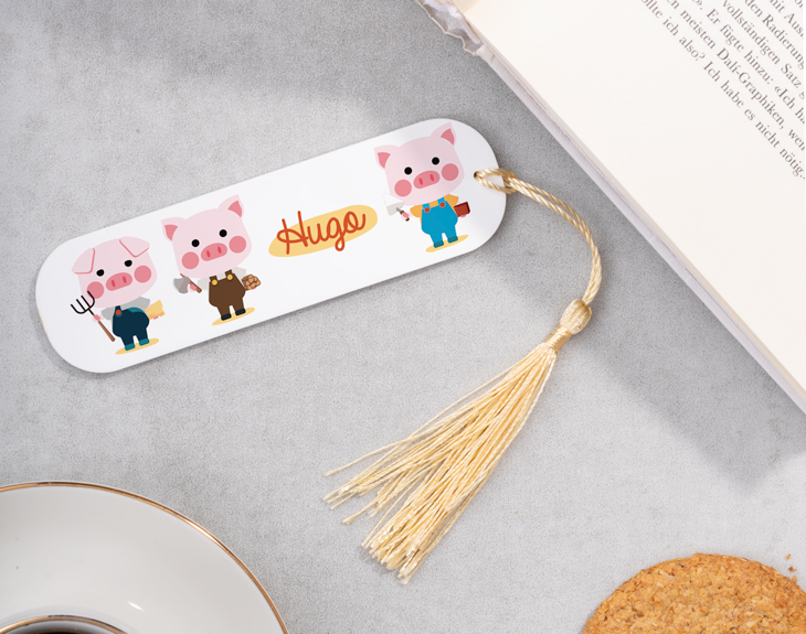 Hay historias que nos acompañarán toda la vida. ¡Los Tres Cerditos es una de ellas! Entre las muchas cosas que nos enseña, su aventura nos recuerda todo lo que podamos aprender si le dedicamos tiempo a leer. ¿Buscas ideas para transmitir esa pasión por la lectura a las nuevas generaciones? Anímales con este marcapáginas personalizado con llavero. Al final los separadores de páginas vienen y van y se pierden con mucha facilidad. ¡O se estropean! Con este evitarás todos esos problemas, ya que el material de este marcapáginas de metacrilato con nombre no se arrugará igual que los de cartón o papel. Y para que todo el mundo sepa que es tuyo, podrás escribir el breve texto que quieras junto a los 3 monísimos personajes animales. Culmina tu separador personalizado con un llavero escolar metálico, ¡sorpresa entre varios modelos preciosos! Así tendrás con tan solo un clic tu regalo original para lectores, estudiantes y cualquier persona que conozca este gran cuento clásico. Medidas: - 12 cm alto - 3,5 cm ancho - 3 mm grosor Importante: en el extremo incluye una pequeña borla de hilo. Podrás elegir el color que más te guste: gris, negro, azul, rosa o marrón clarito.