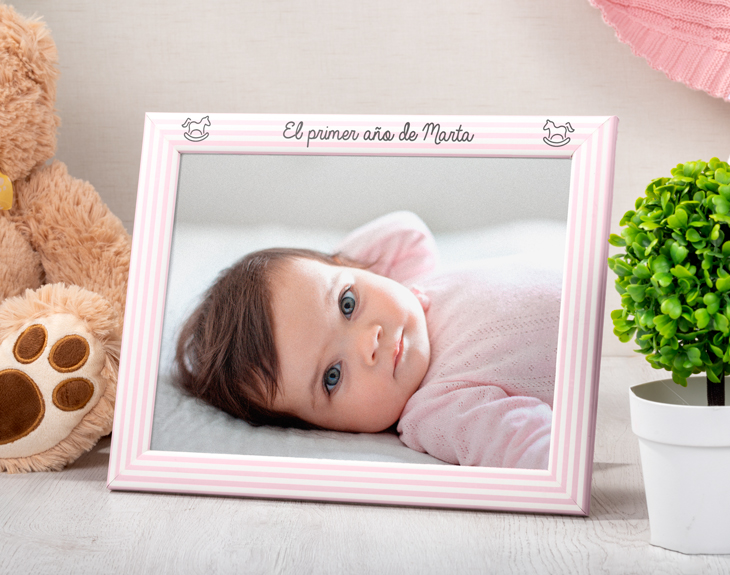 Este marco personalizado está diseñado y grabado exclusivamente para los bebés. Es un regalo perfecto para los amigos que han tenido un niño o mismamente dentro de tu familia. ¿Algún bebé que vaya a cumplir un año? Como el primer año de vida es muy importante, regala este marco grabado con el nombre del pequeño e inserta una foto original que resuma todo lo vivido en 365 días. Por ejemplo, puedes hacer un collage con una foto por cada mes del año. ¡Es un detallazo para los padres! Tamaño de la foto en marco pequeño: 18 cm x 24 cm. Tamaño de la foto en marco grande: 21 cm x 29,7 cm. Tamaño del marco pequeño: 21,5 cm x 27,5 cm. Tamaño del marco grande: 24,5 cm x 33 cm.