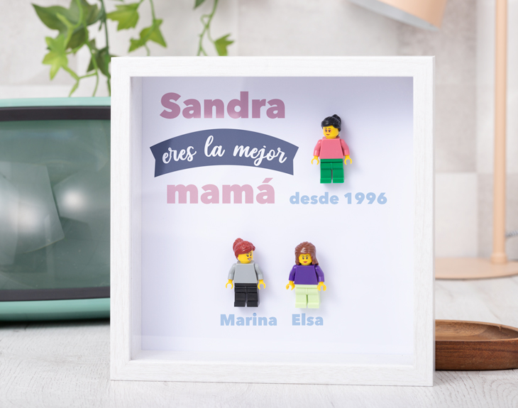 ¿Quién es esa persona con la que más has jugado con las piezas de Lego? Si esa persona es tu mamá. y habéis pasado tardes enteras montando y desmontando estas piezas, está claro que tienes que hacerle un homenaje para que nunca se olvide de esos buenos momentos. Por eso, nuestro marco personalizado con minifiguras Lego es ideal! Ya sea por el Día de la Madre, por su cumpleaños, por cualquier ocasión especial o simplemente por ser la mejor mamá del mundo, este marco con minifiguras Lego es el regalo perfecto para sorprenderla. ¡Le encantará! Además, con este marco, podrás crear a estas minifiguras como tú quieras. ¡Seguro que consigues que os representen a todos tus familiares, ¡tendrás a tu propia familia Lego! Por último, te explicamos como diseñar a estas minifiguras. El primer paso a seguir consiste en entrar en nuestro diseñador. Una vez ahí, ya puedes elegir las características de tu figura Lego y nosotros nos encargamos de montar las piezas para crear a una familia de Legos igualitos a vosotros. Pronto estarán perfectos y listos para regalar. ¡Será un original regalo para fans de Lego! Medidas marco: 20cm x 20cm x 5cm. Medidas figuras Lego: 4cm de alto. Importante: este producto contiene una pequeña ranura en la parte superior. En el caso de que una pieza no esté disponible, se sustituirá por otra similar.