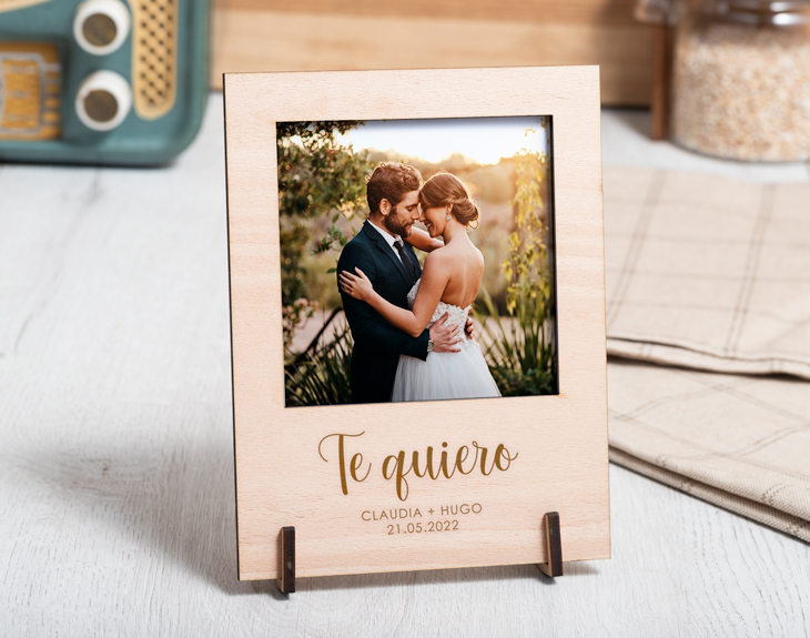 Buscas un detalle para vuestro aniversario o esa fecha especial pero estás sin ideas, quieres ser original pero no se te ocurre nada... ¿Qué te parece este marco personalizado? Ya lleves mucho tiempo con tu pareja y quieras seguir sorprendiéndola o acabéis de empezar y buscas un detalle que no se espera este marco es ideal y completamente personalizable. Si quieres demostrarle tu amor a esa personita especial y darle una sorpresa necesitarás mandarnos la foto que quieres que imprimamos (quedará en formato polaroid) y rellenar el texto con vuestros nombres y vuestra fecha o fecha que estéis celebrando. Y es que este marco no es sólo para parejas, también podéis regalarlo en días especiales a vuestros amigos o a quién más os apetezca. Medida de la foto: 9,5x9,5 Medida del marco: 13x17cm