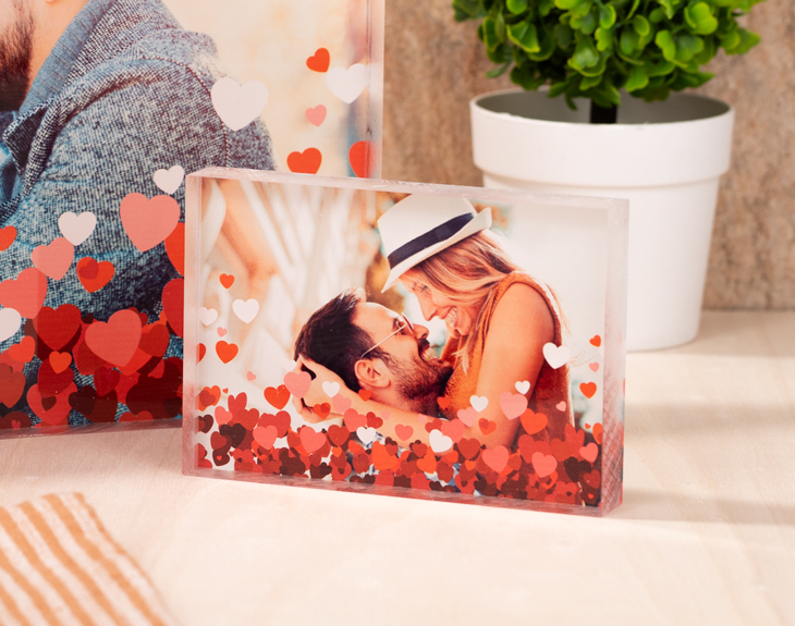 Un regalo original, romántico y perfecto para cualquier ocasión. En este metacrilato podrás poner la foto más especial y rodearla de un buen puñado de corazones. Love is in the air. Piensa que este regalo sirve no solo para un San Valentín o un aniversario, sino para cualquier otra ocasión en la que quieras dejar sin palabras a tu pareja. Poner una foto especial (de la boda, de aquel viaje mágico, de cuando nació vuestro bebé) siempre es una buena idea, y más cuando aparece con un montón de corazoncitos alrededor. Tenemos hasta cuatro tamaños diferentes: - 29,5 x 19,5 x 2 cm. - 15,5 x 9,5 x 2 cm. - 13 x 13 x 2 cm. - 9 x 13 x 2 cm.
