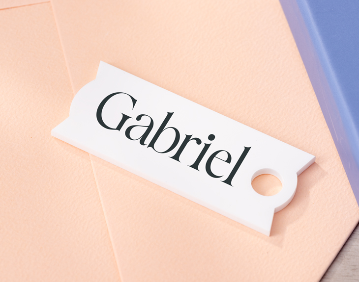 • Adorno de metacrilato personalizado. • Tarjeta Recordatoria.