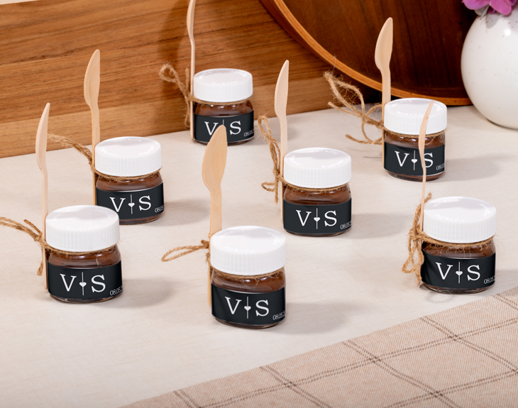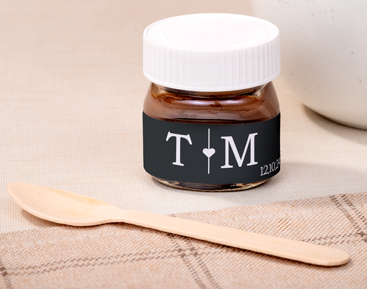 ¿Acaso hay algo más rico que la Nutella? ¡Está claro que no! Es perfecta para cualquier ocasión, porque endulza a cualquiera. Si quieres sorprender a los invitados de tu boda, tenemos el regalo perfecto. Se trata de nuestro mini bote de Nutella personalizado con diseño "Iniciales de amor". Lo más especial es que es personalizable, podrás escribir las iniciales de los novios junto con el día de la boda. ¡Quedará genial! Es una preciosa forma de demostrar a los invitados lo mucho que valoráis su compañía, sin duda, les encantará. ¡Será un recuerdo inolvidable de este día tan especial! Personalizar este mini bote de Nutella es muy sencillo. El primer paso a seguir consiste en añadir el producto al carrito y entrar al área de personalización. Una vez ahí, ya puedes escribir el nombre que tú quieras. Pronto estará perfecto y listo para regalar. ¡Será un original regalo para bodas! Este mini bote Nutella incluye una cuchara de madera y tiene una capacidad de 25gr.