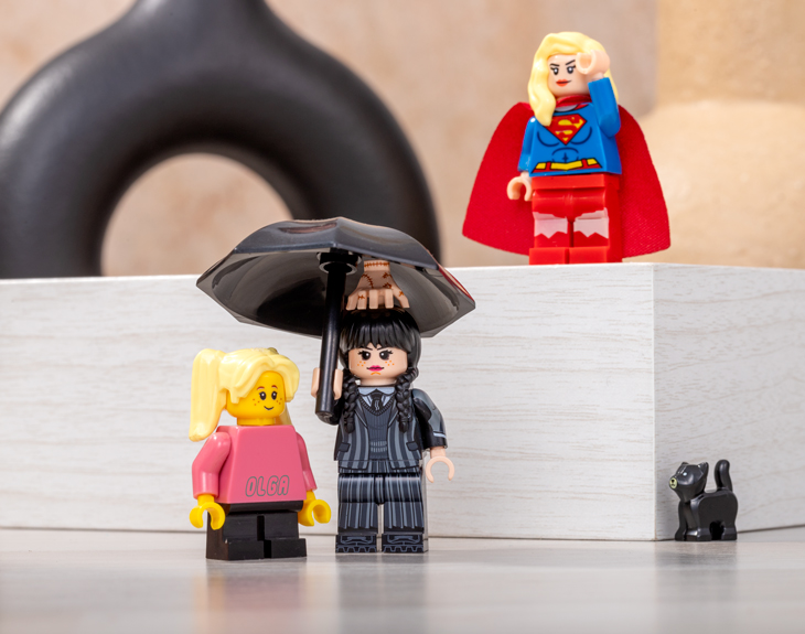 • Minifigura Lego personalizada. • Tarjeta recordatoria.