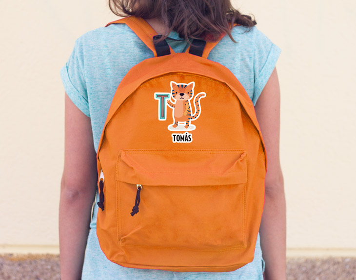 • Mochila "Alfabeto animales" personalizada. • Tarjeta Recordatoria.