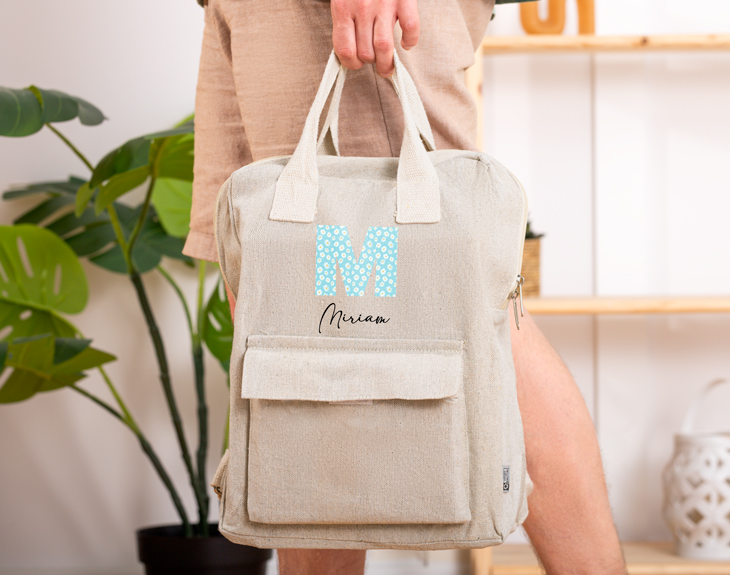Si lo que buscas es una mochila de lo más elegante para ir siempre genial a la universidad, nuestra mochila beige personalizada con diseño "Familia Florecitas" es la opción perfecta. Y es que esta mochila es ideal para llevar todo lo necesario a las clases como el estuche, los libros, los apuntes, el almuerzo... ¡Cabe de todo! Esta mochila de color beige está fabricada de algodón reciclado, cuenta con dos asas para colgarla en la espalda y además, también tiene dos asas más pequeñas para poder llevarla en la mano. Lo más especial de esta mochila es que es personalizable, podrás escribir el nombre que tú quieras y escoger la inicial. ¡Quedará genial! Personalizar esta mochila beige es muy sencillo. El primer paso a seguir consiste en añadir el producto al carrito y entrar al área de personalización. Una vez ahí, ya puedes escribir el nombre que tú quieras y escoger una inicial de nuestro alfabeto. Pronto estará perfecto y listo para regalar. ¡Será un original regalo para cualquier ocasión! Medidas: 25 X 10 X 35 cm. Material: Algodón reciclado.