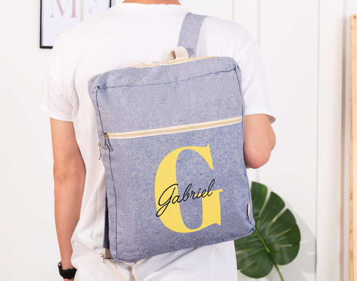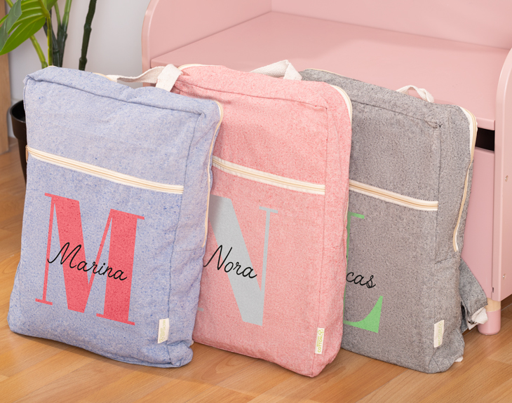 ¡Se acerca la vuelta al cole! Los niños vuelven a la rutina y a las actividades extraescolares. Si quieres sorprender a ese estudiante que va a tener que volver a ponerse a estudiar, tenemos el detalle perfecto que lo animará un montón. Se trata de nuestra mochila colours personalizada con diseño "Inicial de colores". ¡Es genial! Esta mochila fabricada de algodón reciclado está disponible en tres colores: rosa, gris y azul. ¡Elige tu favorito! Lo mejor de esta mochila es que es personalizable, podrás escribir el nombre que tú quieras. Sin duda, esta mochila es perfecta para llevarla al colegio o a la universidad. ¡Hay espacio para todo el material escolar! Personalizar esta mochila de algodón es súper sencillo. El primer paso a seguir consiste en añadir el producto al carrito y entrar al área de personalización. Una vez ahí, ya puedes escribir el nombre que tú quieras y elegir el color de la inicial. Pronto estará perfecta y lista para regalar. ¡Será un original regalo para la vuelta al cole! Medidas: 39 X 33 X 8 cm. Material: Algodón reciclado. Colores disponibles: azul, rojo y gris.