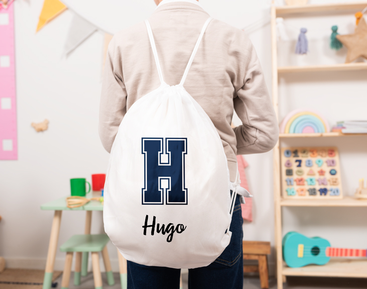 ¿Estás pensando en tener un detalle con tu hijo? Ahora que con la vuelta al cole pasan mucho más tiempo fuera de casa, esta mochila de cuerdas “Alfabeto college” puede ser un regalo muy original. Podrá guardar todo lo necesario, como el estuche, chaqueta, merienda, cartera, botella de agua… Todo eso y más cabe en nuestra mochila de cuerdas. Es ideal para que la lleve a las actividades extraescolares, a las excursiones o para pasar la tarde en el parque con sus amigos. Y lo mejor que tiene es que es personalizable, podrás escribir su nombre. Ya verás la ilusión que le hacer recibir este regalo tan chulo, estará deseando presumirla delante de sus compañeros. Personalizar esta mochila de cuerdas es súper sencillo. El primer paso a seguir consiste en añadir el producto al carrito y entrar al área de personalización. Una vez ahí, escribes el nombre que quieras y eliges la inicial de nuestro alfabeto college. Nosotros nos encargamos de todo lo demás. Pronto quedará perfecto y listo para regalar. ¡Un regalo original para la vuelta la cole Medidas: 34,5 cm x 41 cm. Material: suave poliéster 210T