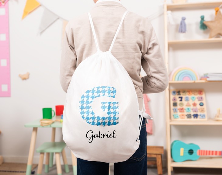 Si estás pensando en tener un detalle con el peque de la casa para amenizarle la rutina, tenemos el regalo perfecto. Se trata de nuestra mochila de cuerdas “Alfabeto Vichy”. Imagina la ilusión que le hará recibir este regalo tan guay, sin duda, le dejará sin palabras. Además, es personalizable. ¡No habrá otra igual! Estará deseando que llegue la hora de ir al cole para presumir delante de sus compañeros. ¡Será la envidia de la clase! Esta mochila se convertirá en su nueva compañera de aventuras. Le acompañará a cualquier lugar que vaya, se la puede llevar a las actividades extraescolares, a los entrenamientos o cuando vaya a jugar al parque con sus amigos. Es muy práctica y cómoda, ideal para que vaya siempre bien preparado con todo lo necesario como la merienda, una botella de agua, una sudadera… ¡Cabe de todo! Personalizar esta mochila de cuerdas es súper sencillo. El primer paso a seguir es añadir el producto al carrito y entrar al área de personalización. Una vez ahí, podrás escribir el nombre de tu hijo y escoger la inicial de nuestro alfabeto Vichy. Pronto quedará perfecta y lista para regalar. ¡Un regalo original para la vuelta al cole! Medidas: 34,5 cm x 41 cm. Material: suave poliéster 210T