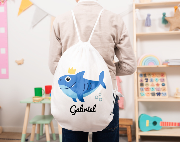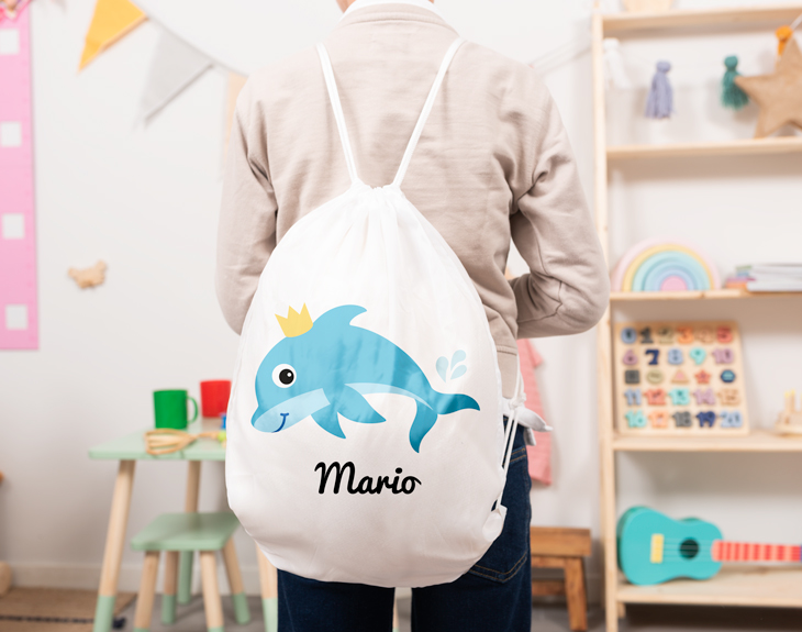 ¿El más peque de la casa es un amante del fondo del mar y sus profundidades? Si siempre que va a la playa se pasa en el agua horas y horas jugando, esta mochila de cuerdas está hecha expresamente para él. Tiene un diseño de un animal acuático, se puede elegir entre varios estampados: un delfín, un tiburón o una ballena, el que más le guste a tu hijo. ¡Le dejará sin palabras! Estará deseando que llegue la vuelta al cole para presumir de mochila. Esta mochila es el regalo perfecto si quieres tener un detalle con él por su vuelta a la rutina. Se volverá su nueva compañera de aventuras, es ideal para llevarla a las excursiones, a las actividades extraescolares o para llevarla al parque. Así siempre llevará todo lo necesario allá donde vaya. ¡Serán inseparables! Y te preguntarás…¿Cómo se puede personalizar esta mochila? Es muy sencillo. Primero tienes que añadir el producto al carrito y acceder al área de personalización. Una vez ahí, solo tendrás que escribir el nombre que quieras y ya nosotros nos encargamos de plasmarlo en el diseño. En todo momento podrás ver cómo queda el resultado en la vista previa de nuestra página web. Medidas: 34,5 cm x 41 cm. Material: suave poliéster 210T
