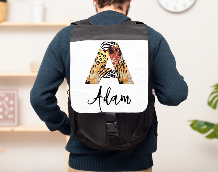 ¿Tú también conoces a ese amante del estampado Animal Print? Sin duda, nuestra mochila negra tamaño XL con diseño "Animal Print" es algo que no le puede faltar. Lo mejor es que es personalizable, podrás escribir tu nombre en esta mochila tan guay y escoger la inicial que quieras. ¡Conquistará los corazones más salvajes! Esta mochila personalizada es ideal para llevar todo lo necesario al colegio o a la universidad. Además, tiene un montón de compartimentos perfectos para guardar los bolis, rotuladores, la agenda, cuadernos, botella de agua y, sobre todo, el portátil. También, esta mochila se puede convertir en un regalo muy original para ese estudiante tan estresado, le animará un montón a acudir a todas sus clases. Personalizar esta mochila negra XL es súper sencillo. El primer paso a seguir consiste en añadir el producto al carrito y entra al área de personalización. Una vez ahí, ya puedes escribir el nombre que tú quieras y escoge la inicial de nuestro Alfabeto Animal Print. Pronto estará perfecta y lista para regalar. ¡Será un original regalo! Medidas: 39 cm x 44 cm aproximadamente.