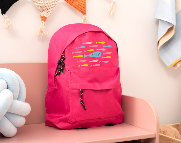 ¿A qué niño o niña no le gusta el verano? Son unos meses mágicos, en los que tienen libertad total para jugar y estar con sus amigos. No hay presión, ni hay deberes, ni hay exámenes... ¡es como el paraíso para ellos! Sin embargo, como dice el dicho: lo bueno si breve, dos veces bueno. Ha llegado la hora de volver a clase, y estamos seguros de que los niños están preparadísimos para volver a ver a sus compañeros y amigos. ¡Queremos que estén bien equipados! Para ello contamos con un producto que le sorprenderá: esta mochila personalizada le recordará a ese precioso mar que tanto le gusta. Los pececitos le dan un curioso toque a esta mochila. ¡Seguro que será el niño más guay de todo el cole gracias a esta mochila! Si quieres sorprender a tu hijo con un regalo original para la vuelta al cole, este es el producto indicado. No solo podrás elegir el color que más te guste para la mochila. Además, podrás escribir su nombre en el diseño. Así todos los niños del cole sabrán a quién pertenece esta mochila tan molona. Medidas aproximadas: 38cm x 40cm.
