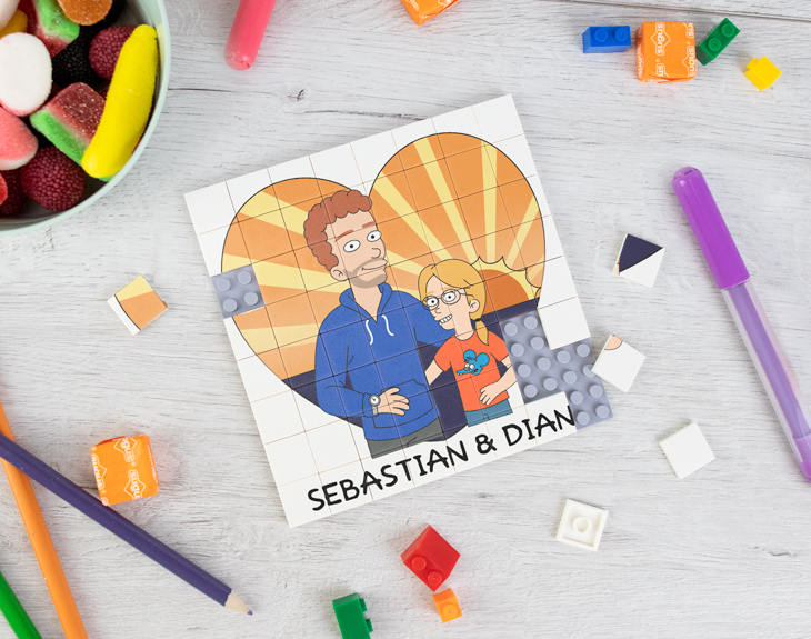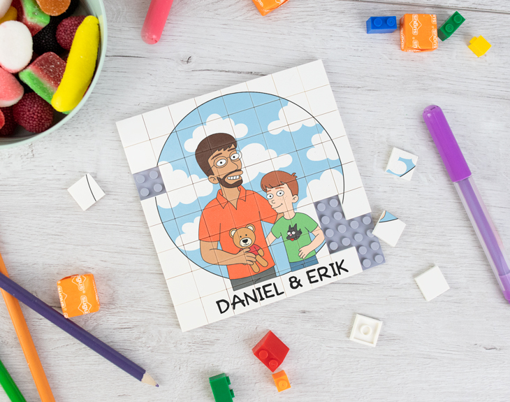 Los rompecabezas pueden llegar a ser muy complicados pero un Simpson nunca se rinde. Si papá siempre se ha querido convertir en un personaje más de su serie favorita, este mosaico de bloques personalizado hará que sus sueños se hagan realidad. ¡Podréis armar toda la familia junta este mosaico formado por pequeñas planchas de construcción! Este mosaico formado por bloques con diseño Simpson está pensado para pasar un buen rato mientras lo armáis. ¡Decorará el salón de casa como ningún otro objeto! Este mosaico está formado por una placa sobre la que se podrán poner hasta 64 piezas de bloque. Juntas formarán un diseño hecho exclusivamente para esos papás tan divertidos y animados a los que les encanta revivir las aventuras de la familia más famosa de Springfield. ¿Cómo podrás personalizar este regalo original para padres? Tú mismo/a podrás diseñar los dos personajes como quieras, con todos esos detalles que hacen que papá y el pequeño de la casa sean tan únicos y especiales. Una vez añadas el producto al carrito encontrarás el área de personalización, donde podrás entrar al diseñador de personajes. ¡Crea vuestros propios Simpson con la variedad de peinados, ropas y rasgos físicos que encontrarás! Medidas: 13 x 13 cm.