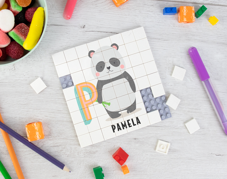 ¿Cuál es el animal favorito de tu hijo? Todos los niños pequeños tienen un animal predilecto, un animal que siempre dibujan a la menor ocasión. ¡Puede ser que ese animal coincida con la inicial de su nombre! Si a tu peque le apasionan las animales de una forma de lo más loca este mosaico de bloques personalizado está hecho para él. Y es que este juego de piezas de construcción con diseño de animales está pensado para ponerlo en cualquier rincón de su cuarto una vez esté montado del todo. Las 64 piezas que conforman este mosaico están impresas con este diseño, en el que podrás incluir el nombre que quieras. ¿Dónde lo podréis armar? Este regalo incluye la plancha cuadrada de 13 x 13 centímetros, donde podréis conformar vuestro colorido mosaico. ¿Y cómo podrás personalizar este regalo original para los más pequeños? ¡Pues eligiendo su inicial dentro de nuestro peculiar alfabeto animales! Al añadir este producto al carrito podrás acceder al diseñador, donde tendrás la oportunidad de elegir la letra que quieres que lleve este producto. Una vez escogido, será el momento de escribir el nombre de tu hijo o hija. ¡Será un detalle precioso! Medidas: 13 x 13 cm. El bloque incluye 64 piezas.