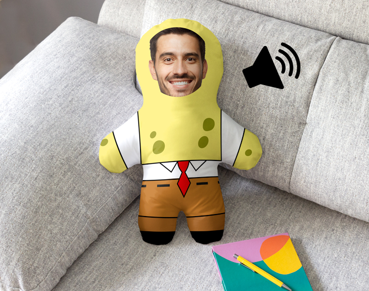¿Qué hubiese sido de Patricio sin Bob Esponja? Son tan diferentes pero con una amistad tan bonita, que seguro que te recuerda a ti y tu mejor amigo. Por eso, si quieres sorprender a tu otra mitad con un regalo único y muy divertido, este muñeco personalizado es perfecto. Deja sin palabras a esa persona tan especial con este peluche de diseño de Bob Esponja y su cara. ¡Le hará mucha gracia! Si sois iguales que Bob Esponja y Patricio y habéis vivido miles de aventuras y momentos juntos, este original regalo lleva vuestro nombre. Porque si ambos sois fans de esta divertida serie, le encantará recibir un peluche tan único y diferente como este, con el que siempre se acordará de ti. Además, podrá acurrucarlo siempre que quiera o utilizarlo como decoración para verlo todos los días. ¡Es genial! Personalizar este peluche es muy sencillo. Añade el producto al carrito y entra en el área de personalización. Una vez ahí, podrás añadir la imagen con la cara que quieras y colocarla a tu gusto para que quede perfecta. Así de sencillo es crear tu propio muñeco para sorprender a ese amigo que tanto se lo merece. ¡Seguro que a partir de ahora no se separa de él! Si estás buscando un regalo divertido para amigos, no busques más, aquí tienes la opción más graciosa y especial de todas. ¡Las risas están aseguradas! Además, podrás personalizar este muñeco añadiendo una grabación de voz, eligiendo la opción de “Muñeco con voz”. ¡Podrás incluir la voz o canción que quieras en este muñeco! ¿Cómo se graba el mensaje? ¡Es muy sencillo! Añade el muñeco al carrito y dale al botón de "personalizar". Podrás grabar un mensaje en ese momento (con el micro del móvil o del ordenador) y nosotros nos encargaremos de incluirlo en el peluche. ¡El único límite es tu imaginación! Puedes cantar, ponerte romántico, hacer una proposición... Límite de grabación: 30 segundos. Una vez se reciba el muñeco, habrá que tomar una difícil decisión: se puede repetir el mensaje original (manteniendo pulsado el bracito derecho del muñeco cada vez que quieras escucharlo) o grabar un mensaje nuevo (cada vez que mantengas pulsado el bracito izquierdo del muñeco). Medidas del muñeco: 50x35 cm. Material: poliéster.