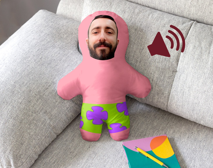 ¿Qué hubiese sido de Bob Esponja sin su inseparable Patricio? Si tú también tienes un amigo o una amiga así de incondicional, ha llegado el momento de hacerle un regalo tan original como este. Y es que, no se nos ocurre una manera más divertida de agradecerle todo lo que ha hecho por ti que con un peluche de Patricio con su propia cara. Sí, como has leído, solamente tendrás que subir una foto suya a nuestro diseñador y podrás incluir su imagen en el cuerpo de Patricio. ¿No te parece la idea más loca y graciosa de todas? Además, si desde siempre ha sido muy fan de estos dibujos, se partirá de risa al ver este muñeco personalizado con su cara. Aunque en nuestro diseñador podrás recortar la foto para que se ajuste perfectamente al diseño, te recomendamos escoger una foto de frente para que se adapte más fácilmente. Si como Bob Esponja y Patricio, vosotros/as también habéis vivido miles de aventuras juntos/as, este detalle tiene vuestro nombre. Ya sea para darle una sorpresa en su cumpleaños o en cualquier otra fecha señalada, será un regalo que no olvidará nunca. Además, es super blandito y cómodo, por lo que podrá abrazarlo para dormir cada noche. ¡Seguro que a partir de ahora no se separa de él! Si estás buscando un regalo divertido para amigos, no busques más, aquí tienes la opción más graciosa y especial de todas. ¡Las risas están aseguradas! Además, podrás personalizar este muñeco añadiendo una grabación de voz, eligiendo la opción de “Muñeco con voz”. ¡Podrás incluir la voz o canción que quieras en este muñeco! ¿Cómo se graba el mensaje? ¡Es muy sencillo! Añade el muñeco al carrito y dale al botón de "personalizar". Podrás grabar un mensaje en ese momento (con el micro del móvil o del ordenador) y nosotros nos encargaremos de incluirlo en el peluche. ¡El único límite es tu imaginación! Puedes cantar, ponerte romántico, hacer una proposición... Límite de grabación: 30 segundos. Una vez se reciba el muñeco, habrá que tomar una difícil decisión: se puede repetir el mensaje original (manteniendo pulsado el bracito derecho del muñeco cada vez que quieras escucharlo) o grabar un mensaje nuevo (cada vez que mantengas pulsado el bracito izquierdo del muñeco). Medidas del muñeco: 50x35 cm. Material: poliéster.