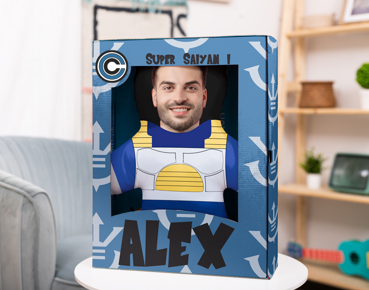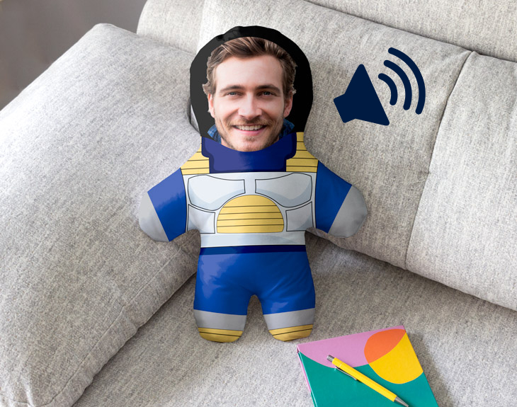 Dragon Ball es la serie que marcado la infancia de muchos, aunque siendo sinceros, de adultos también la seguimos viendo y disfrutando. Era obligatorio cada día ver un episodio nuevo y disfrutar con las aventuras de sus protagonistas. Todos estábamos enganchados a este manga que ha conquistado las televisiones de todo el mundo, sea donde sea. Por eso, si eres un auténtico fan o comparte tu pasión por Dragon Ball con alguien muy especial, el mejor regalo que le puedes hacer es este muñeco de peluche personalizado con foto de uno de los protagonistas de esta serie, Vegeta. Este divertido y adorable muñeco es muy blandito y tiene una textura muy suave. Es el detalle perfecto para abrazarlo mientras ves la serie o tenerlo de adorno en cualquier rincón de casa para que todos tus invitados lo vean. Este original muñeco es perfecto para todas las edades porque conquistará a pequeños y mayores, fans absolutos de Dragon Ball y Planeta Vegeta. No hay mejor manera de volver a recordar nuestra infancia que con este recuerdo. ¡Es el mejor regalo del mundo! Para terminar este regalo, tienes que personalizar este muñeco, sólo tendrás que subir al diseñador la imagen que quieras. Te recomendamos que sea de frente y se vea bien la cara para que quede perfecto. Además, podrás recortarla para ajustarla mejor. Y el cuerpo es lo mejor de todo, tiene el traje oficial de... ¡Vegeta! Hazte con el muñeco más divertido y único y haz el regalo más original de cualquier celebración. Sorprender a esa persona tan especial con un peluche personalizado y hecho a medida mola mucho, pero mola aún más añadirle su propia caja personalizada. El mejor regalo del mundo existe y es este adorable muñeco con caja, que dejará sin palabras a quien lo reciba. ¡Parece que ha salido de cualquier juguetería! Pero sin duda lo mejor de todo es que podrás personalizar esta caja con el diseño que más te guste, escribir tu propio texto y añadir todos los detalles necesarios para que quede genial. ¡Deja volar tu imaginación y crea el regalo perfecto! Además, podrás personalizar este muñeco añadiendo una grabación de voz, eligiendo la opción de “Muñeco con voz”. ¡Podrás incluir la voz o canción que quieras en este muñeco! ¿Cómo se graba el mensaje? ¡Es muy sencillo! Añade el muñeco al carrito y dale al botón de "personalizar". Podrás grabar un mensaje en ese momento (con el micro del móvil o del ordenador) y nosotros nos encargaremos de incluirlo en el peluche. ¡El único límite es tu imaginación! Puedes cantar, ponerte romántico, hacer una proposición... Límite de grabación: 30 segundos. Una vez se reciba el muñeco, habrá que tomar una difícil decisión: se puede repetir el mensaje original (manteniendo pulsado el bracito derecho del muñeco cada vez que quieras escucharlo) o grabar un mensaje nuevo (cada vez que mantengas pulsado el bracito izquierdo del muñeco). Medidas del muñeco: 50x35 cm. Material: poliéster.