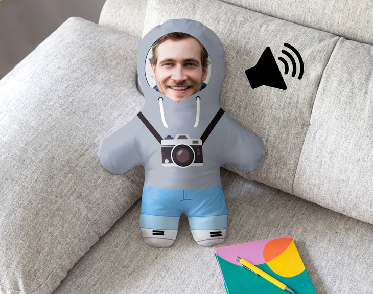 ¿Acaso puede haber un mejor trabajo que ese en el que te encargas de capturar momentos de la vida con tu cámara? Este peluche personalizado está hecho para sacarle una sonrisa a ese fotógrafo que siempre se dedica ha retratarte lo más guapo/a posible. ¡Seguro que no se esperará un muñeco tan blandito con su cara! Este muñeco de fotógrafo personalizado con su foto será la mejor forma de agradecer a esa persona que siempre se dedica a fotografiar los instantes más felices de vuestra rutina. Si tienes un fotógrafo en tu vida, este peluche hecho de poliéster y de 50 centímetros de altura está pensado para sorprenderle de la forma más inesperada. ¡Lo podrá colocar en cualquier rincón de su casa! No se nos ocurre una forma más bonita y divertida de dejarle con la boca abierta que con este regalo original para fotógrafos. ¡Está hecho especialmente para él! Podrás personalizar el producto con su mejor foto de cara, añadiendo el producto al carrito y entrando en el área de personalización. Sube la foto que quieras al sistema y recórtala para ajustar la cara al diseño del fotógrafo. ¡Será un detalle precioso! Además, podrás personalizar este muñeco añadiendo una grabación de voz, eligiendo la opción de “Muñeco con voz”. ¡Podrás incluir la voz o canción que quieras en este muñeco! ¿Cómo se graba el mensaje? ¡Es muy sencillo! Añade el muñeco al carrito y dale al botón de "personalizar". Podrás grabar un mensaje en ese momento (con el micro del móvil o del ordenador) y nosotros nos encargaremos de incluirlo en el peluche. ¡El único límite es tu imaginación! Puedes cantar, ponerte romántico, hacer una proposición... Límite de grabación: 30 segundos. Una vez se reciba el muñeco, habrá que tomar una difícil decisión: se puede repetir el mensaje original (manteniendo pulsado el bracito derecho del muñeco cada vez que quieras escucharlo) o grabar un mensaje nuevo (cada vez que mantengas pulsado el bracito izquierdo del muñeco). Medidas del muñeco: 50x35 cm. Material: poliéster.