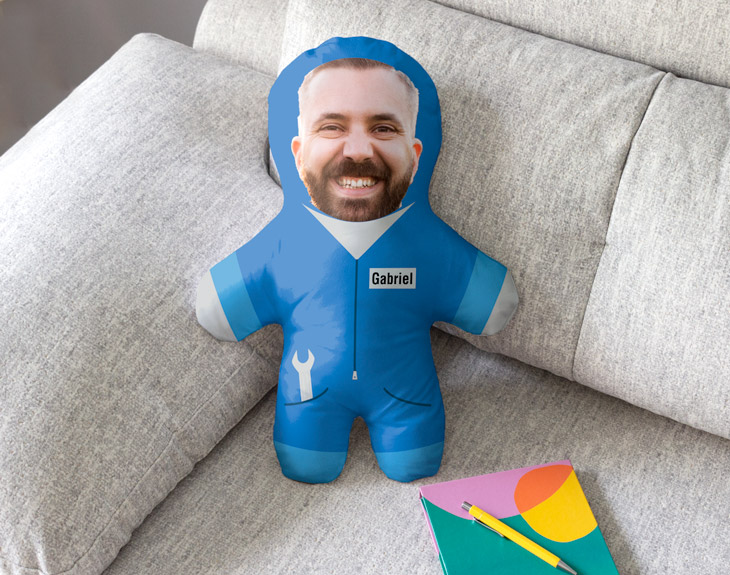 Hay ciertas profesiones que son indispensables para nuestra vida diaria. El mantenimiento de nuestro coche es muy importante, por lo que hay que contar con un mecánico de confianza. ¿Quieres sorprenderle por todo su duro trabajo a lo largo de estos años? Este peluche personalizado está pensado para esa persona que cambia las ruedas y arregla el coche como nadie lo hace. Si estás pensando en recompensar a esa persona que siempre está dispuesta a ayudarte, este muñeco de mecánico personalizado con su foto puede ser el detalle más divertido. Este muñeco está hecho de poliéster, tiene una altura de 50 centímetros y viene con un diseño hecho especialmente para los mejores mecánicos, con el clásico mono azul y las herramientas más importantes. ¿Cuál puede ser la mejor forma de dejar con la boca abierta a la persona que mejor conoce tu coche? Este regalo original para mecánicos está pensado para él. Podrás personalizarlo con su mejor foto de cara, añadiéndola en el área de personalización y recortándola para ajustarla a la plantilla. ¡Nosotros nos encargaremos de plasmar este diseño en el muñeco! Además, podrás personalizar este muñeco añadiendo una grabación de voz, eligiendo la opción de “Muñeco con voz”. ¡Podrás incluir la voz o canción que quieras en este muñeco! ¿Cómo se graba el mensaje? ¡Es muy sencillo! Añade el muñeco al carrito y dale al botón de "personalizar". Podrás grabar un mensaje en ese momento (con el micro del móvil o del ordenador) y nosotros nos encargaremos de incluirlo en el peluche. ¡El único límite es tu imaginación! Puedes cantar, ponerte romántico, hacer una proposición... Límite de grabación: 30 segundos. Una vez se reciba el muñeco, habrá que tomar una difícil decisión: se puede repetir el mensaje original (manteniendo pulsado el bracito derecho del muñeco cada vez que quieras escucharlo) o grabar un mensaje nuevo (cada vez que mantengas pulsado el bracito izquierdo del muñeco). Medidas del muñeco: 50x35 cm. Material: poliéster.