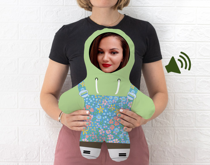 ¿No desearías que fuera verano todo el año para poder ir siempre con la ropa más fresquita y colorida posible? No hay nada que alegre más la vista que un bonito motivo floral. ¡Casi puedes oler esos lirios! Para que los tengas bien cerquita sea la época que sea, puedes convertir a tu mejor amig@ o pareja en un muñeco de peluche personalizado con foto y este precioso atuendo primaveral. ¡Así siempre podrás abrazarle/la aunque no esté cerca tuya! Las risas están aseguradas, y apenas te llevará unos minutos personalizar este cojín con tu cara. Para empezar, puedes elegir entre varios colores de fondo disponibles. Una vez hecho desde el carrito, podrás añadir cualquier imagen donde salgas con una cara bonita y recortarla en nuestro diseñador. En todo momento, verás el resultado final con el que irá vestido tu muñeco personalizado. ¡Por detrás continúa el diseño! Ya sea como regalo romántico, para un cumpleaños o para una fiesta, este peluche personalizado con cara es un regalo original para niños y adultos. Cuando lo cojas, notarás lo robusto que es gracias a su relleno incluido y sus 50 centímetros de alto. ¡No podrás dejar de abrazarlo! Además, podrás personalizar este muñeco añadiendo una grabación de voz, eligiendo la opción de “Muñeco con voz”. ¡Podrás incluir la voz o canción que quieras en este muñeco! ¿Cómo se graba el mensaje? ¡Es muy sencillo! Añade el muñeco al carrito y dale al botón de "personalizar". Podrás grabar un mensaje en ese momento (con el micro del móvil o del ordenador) y nosotros nos encargaremos de incluirlo en el peluche. ¡El único límite es tu imaginación! Puedes cantar, ponerte romántico, hacer una proposición... Límite de grabación: 30 segundos. Una vez se reciba el muñeco, habrá que tomar una difícil decisión: se puede repetir el mensaje original (manteniendo pulsado el bracito derecho del muñeco cada vez que quieras escucharlo) o grabar un mensaje nuevo (cada vez que mantengas pulsado el bracito izquierdo del muñeco). Medidas del muñeco: 50x35 cm. Material: poliéster.