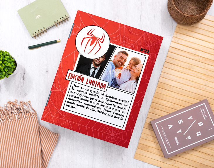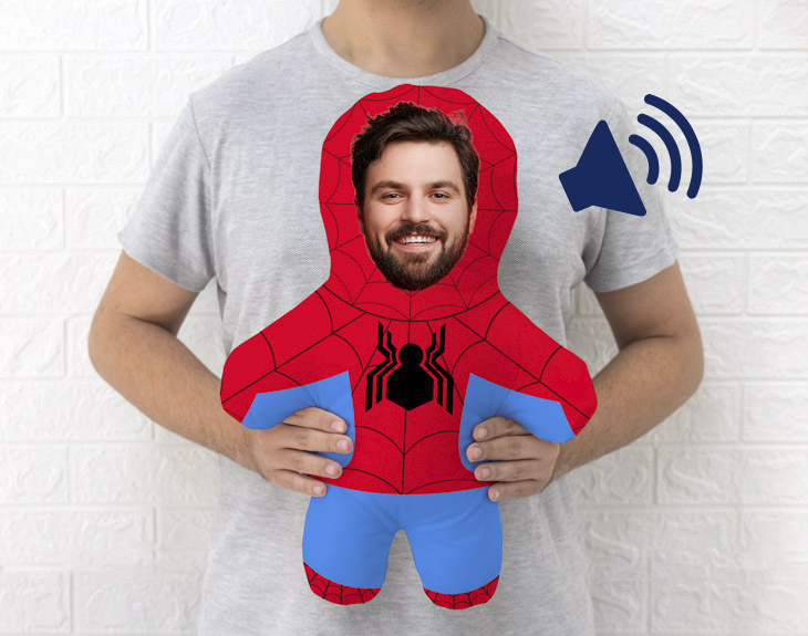 ¿Quién no ha querido alguna vez convertirse en el famosísimo Spiderman? Las aventuras del joven Peter Parker han sido importantísimas para una generación entera de jóvenes y niños. Si uno de los miembros de la familia está completamente obsesionado con el trepamuros más famoso del mundo, este muñeco de peluche personalizado con foto está hecho para todos ellos. ¡Ahora podrás tener el Peter Parker más personal en el salón de tu casa! Este cojín de superhéroe con tu cara cuenta con una funda impresa a todo color con el diseño junto con el relleno, súper mullido para que puedas abrazar este peluche todos los días. Está hecho en poliéster, y cuenta con unas medidas de 50 centímetros de alto por 35 de largo. ¡Convierte a ese fanático de Marvel en el Spiderman más especial! Ni el Duende Verde ni el Doctor Octopus podrán rivalizar con este grandísimo Spiderman. ¿Cómo puedes personalizar este regalo original para niños y adultos? Una vez añadido este fantástico muñeco al carro de compra, podrás acceder al área de personalización, donde encontrarás la plantilla del muñeco. Elige qué Spiderman quieres ser entre el clásico con el traje rojo o su versión en negro. ¡Serás mucho más malvado! Recorta tu cara en nuestro editor y pega la cara en el diseño. ¡Este diseño se imprimirá a color en el peluche! Sorprender a esa persona tan especial con un peluche personalizado y hecho a medida mola mucho, pero mola aún más añadirle su propia caja personalizada. El mejor regalo del mundo existe y es este adorable muñeco con caja, que dejará sin palabras a quien lo reciba. ¡Parece que ha salido de cualquier juguetería! Pero sin duda lo mejor de todo es que podrás personalizar esta caja con el diseño que más te guste, escribir tu propio texto y añadir todos los detalles necesarios para que quede genial. ¡Deja volar tu imaginación y crea el regalo perfecto! Además, podrás personalizar este muñeco añadiendo una grabación de voz, eligiendo la opción de “Muñeco con voz”. ¡Podrás incluir la voz o canción que quieras en este muñeco! ¿Cómo se graba el mensaje? ¡Es muy sencillo! Añade el muñeco al carrito y dale al botón de "personalizar". Podrás grabar un mensaje en ese momento (con el micro del móvil o del ordenador) y nosotros nos encargaremos de incluirlo en el peluche. ¡El único límite es tu imaginación! Puedes cantar, ponerte romántico, hacer una proposición... Límite de grabación: 30 segundos. Una vez se reciba el muñeco, habrá que tomar una difícil decisión: se puede repetir el mensaje original (manteniendo pulsado el bracito derecho del muñeco cada vez que quieras escucharlo) o grabar un mensaje nuevo (cada vez que mantengas pulsado el bracito izquierdo del muñeco). Medidas del muñeco: 50x35 cm. Material: poliéster.