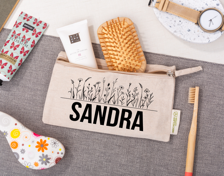 Un neceser es algo imprescindible para esa persona que se pasa el día entero fuera de casa. Es muy práctico para guardar las cosas de aseo personal y así llevarlas siempre en el bolso. Si tu mamá es una de esas personas que por trabajo o porque siempre está de un lado para otro, tenemos el regalo perfecto para ella. ¡Nuestro neceser personalizado con diseño "Mamá flores silvestres"! Si se acerca alguna fecha especial como el Día de la Madre o su cumpleaños, tenemos el regalo perfecto. ¡Nuestro neceser personalizado es ideal! Tiene un estampado precioso con unas flores silvestres que además, es personalizable. ¡Podrás escribir el nombre que tú quieras! Por último, solo queda personalizar este neceser. ¡Es muy sencillo! El primer paso a seguir consiste en añadir el producto al carrito y entrar al área de personalización. Una vez ahí, ya puedes escribir el nombre que tú quieras. Pronto estará perfecto y listo para regalar. ¡Será un original regalo para madres! Material: algodón reciclado. Medidas: 21x12,5 cm.