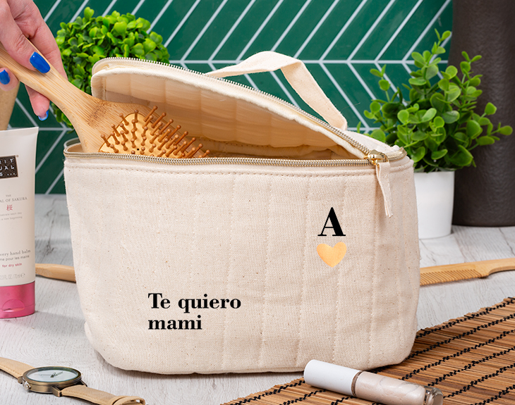 ¿Quieres demostrarle a tu mamá lo mucho que la quieres? ¡Hazlo de la manera más original de todas! Sorpréndela con nuestro neceser personalizado con diseño "Te quiero mami", es ideal. Además, si tu madre es de esas personas que siempre anda de un lado para otro, este neceser es ideal para que pueda llaver sus cosas de aseo siempre con ella. ¡Le encantará! Tienes una medidas de 23 x 14 centímetros, las dimensiones perfectas para guardar todo lo imprescindible como las lentillas, el cepillo de dientes, el peine... ¡Cabe de todo! Y lo mejor es que es personalizable. ¡Podrás escribir el nombre de la mejor mamá del mundo! Sin duda, será un regalo único para cualquier ocasión especial, como el Día de la Madre, un cumpleaños o incluso un amigo invisible. ¡Acertarás seguro! Por último, para personalizar este neceser es muy sencillo. El primer paso a seguir consiste en añadir el producto al carrito y entrar al área de personalización. Una vez ahí, ya puede escribir el nombre que tú quieras. Pronto estará perfecto y listo para regalar. ¡Será un regalo original para madres! Dimensiones: 23 x 14cm